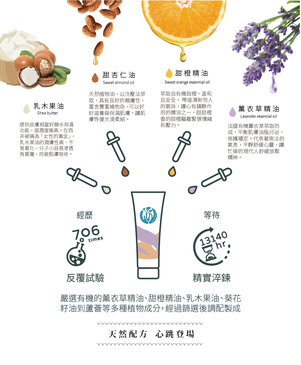◈ 有機乳木果油、蘆薈保濕成分 舒緩手部肌膚乾燥